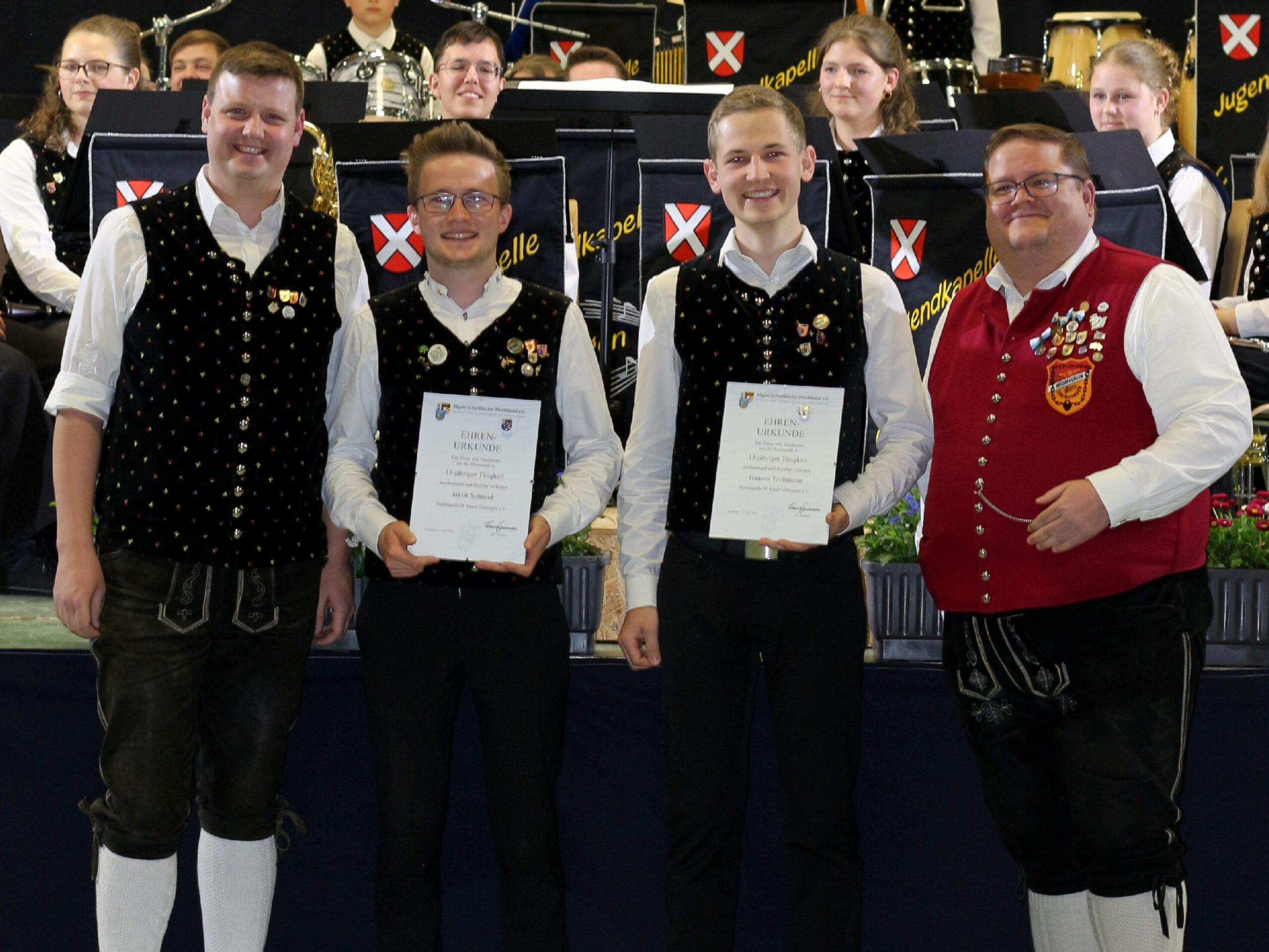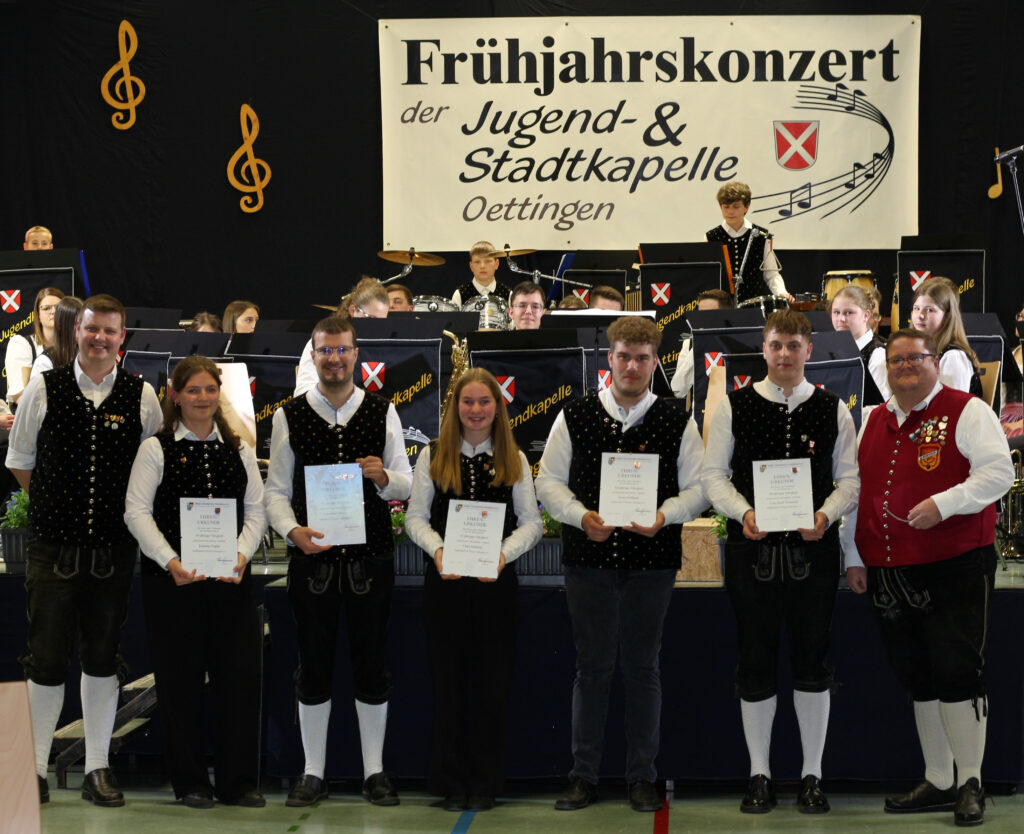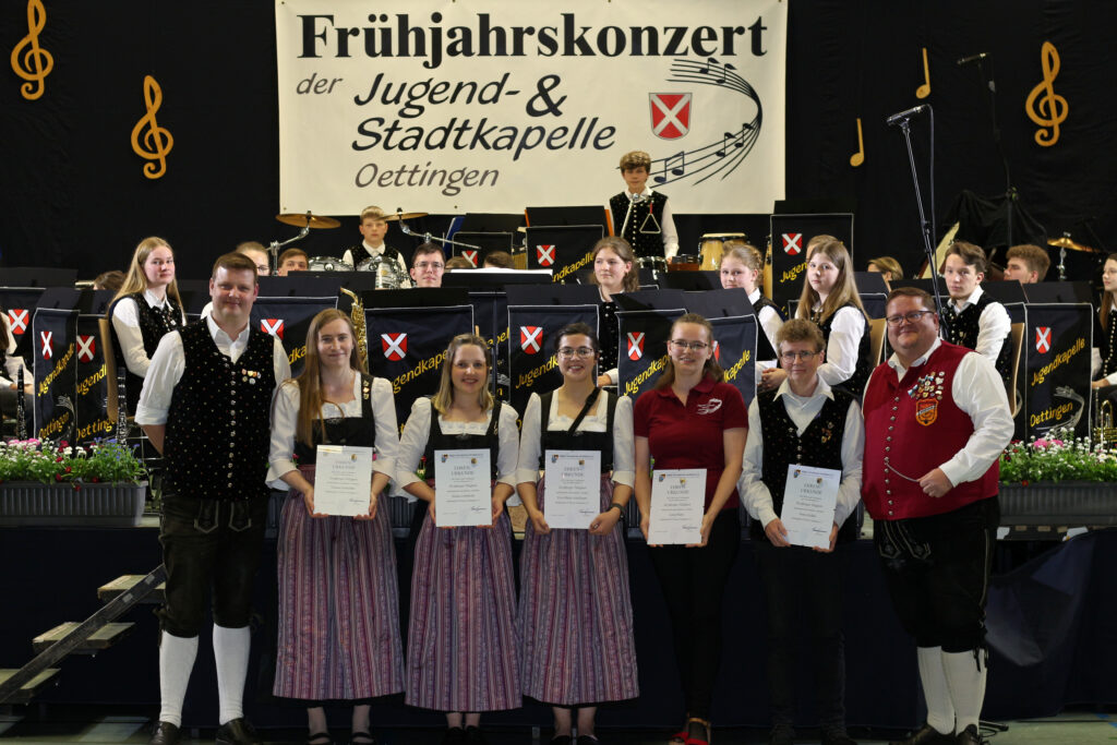 1. Reihe: Rebekka Schneller (D1), Sarah Luff (D1), Finja Bachmann (D1), Jonas Gebhard (D1), Nina Bachmann (D1), Johannes Sailer (D1); 2. Reihe: Achim Wunderle (1. Vorsitzender), Sarah Löffler (D2), Clara Schneid (D2), Johanna Nagler (D2), Sophie Nagler (D2), Simon Krauß (D2), Marlene Müller (D2), Dennis Schneid (D2), Joachim Braun (Bezirksvorsitzender Allgäu-Schwäbischer Musikbund Bezirk 16 Donau-Ries)